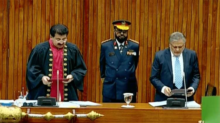 Chairman Senate Sadiq Sanjrani administered the oath to Ishaq Dar.