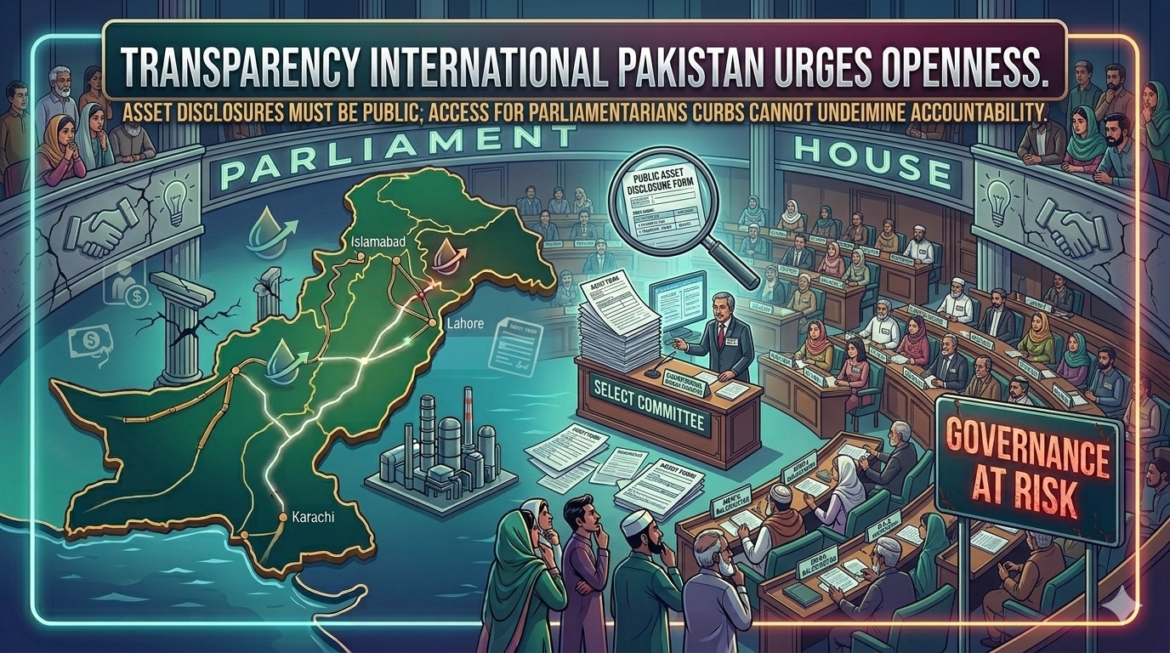 Transparency International Pakistan has urged the president, federal government, and lawmakers to refrain from restricting public access to asset declarations of parliamentarians, warning that such a move could undermine political integrity and legislative transparency.